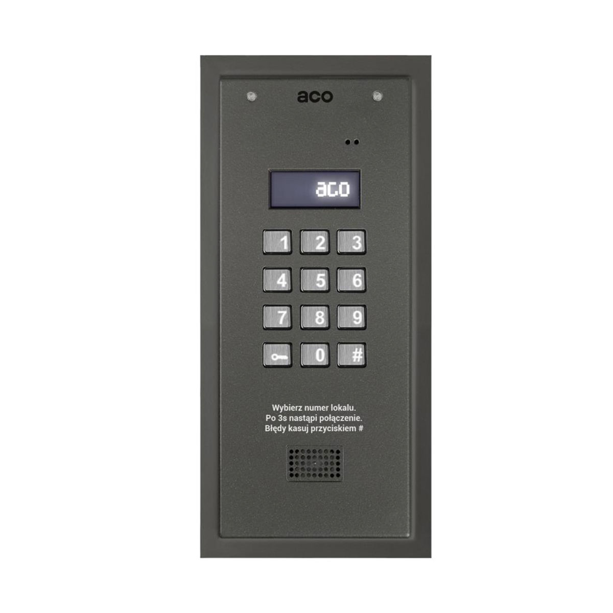 Domofon cyfrowy z zamkiem szyfrowym i czytnikiem zbliżeniowym. Obudowa ze stopu aluminium malowana proszkowo. Płaski front obudowy zlicowany z ramką montażową. Czarny wyświetlacz, białe podświetlenie klawiatury. Kolor Stalowy (ST). Zamek szyfrowy – indywidualny czterocyfrowy kod otwarcia dla każdego lokalu: ACC – czytnik breloków zbliżeniowych Uniqe 125kHz. Max. ilość abonentów: 255 lokali. LCD (podgrzewany)