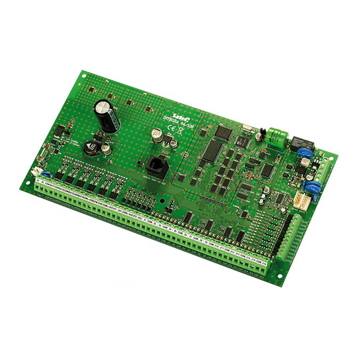 Zaawansowana centrala alarmowa z funkcjami automatyki domowej oraz kontroli dostępu. Obsługa od 16 do 64 wejść, możliwość podziału systemu na 32 stref, 8 partycje,obsługa od 16 do 64 programowalnych wyjść, magistrale komunikacyjne do podłączania manipulatorów i modułów rozszerzeń, wbudowany komunikator telefoniczny z funkcją monitoringu, powiadamiania głosowego i zdalnego sterowania, obsługa systemu alarmowego przy pomocy manipulatorów dotykowych, LCD, klawiatur strefowych, pilotów i kart zbliżeniowych oraz zdalnie z użyciem komputera lub telefonu komórkowego, pamięć 5887 zdarzeń z funkcją wydruku, obsługa do 192+8+1 użytkowników, port RS-232 – gniazdo RJ