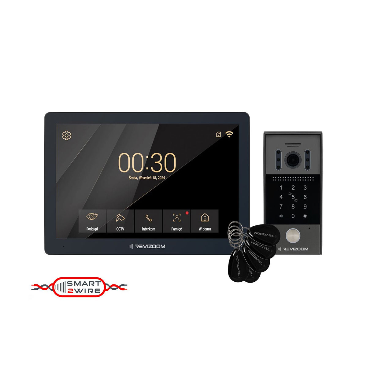 Wideodomofon 10″ głośnomówiący Smart HD z kamerą natynkową szerokokątna z klawiaturą numeryczną i czytnikiem RFID. Instalacja dwużyłowa. Smart 2wire